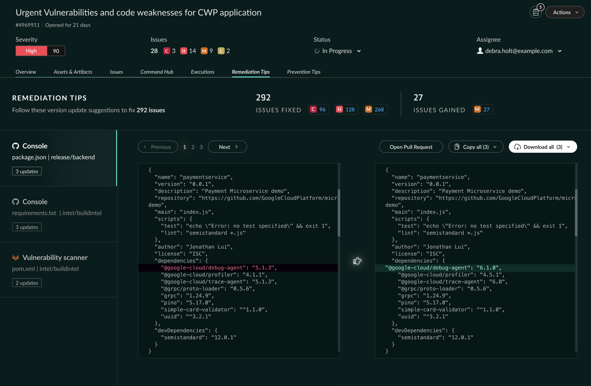 새로운 문제와 기존 문제를 구분하는 타겟형 보안 가드레일을 시행하고, 컨텍스트를 활용하여 개발 속도를 늦추지 않으면서 위험을 예방합니다.