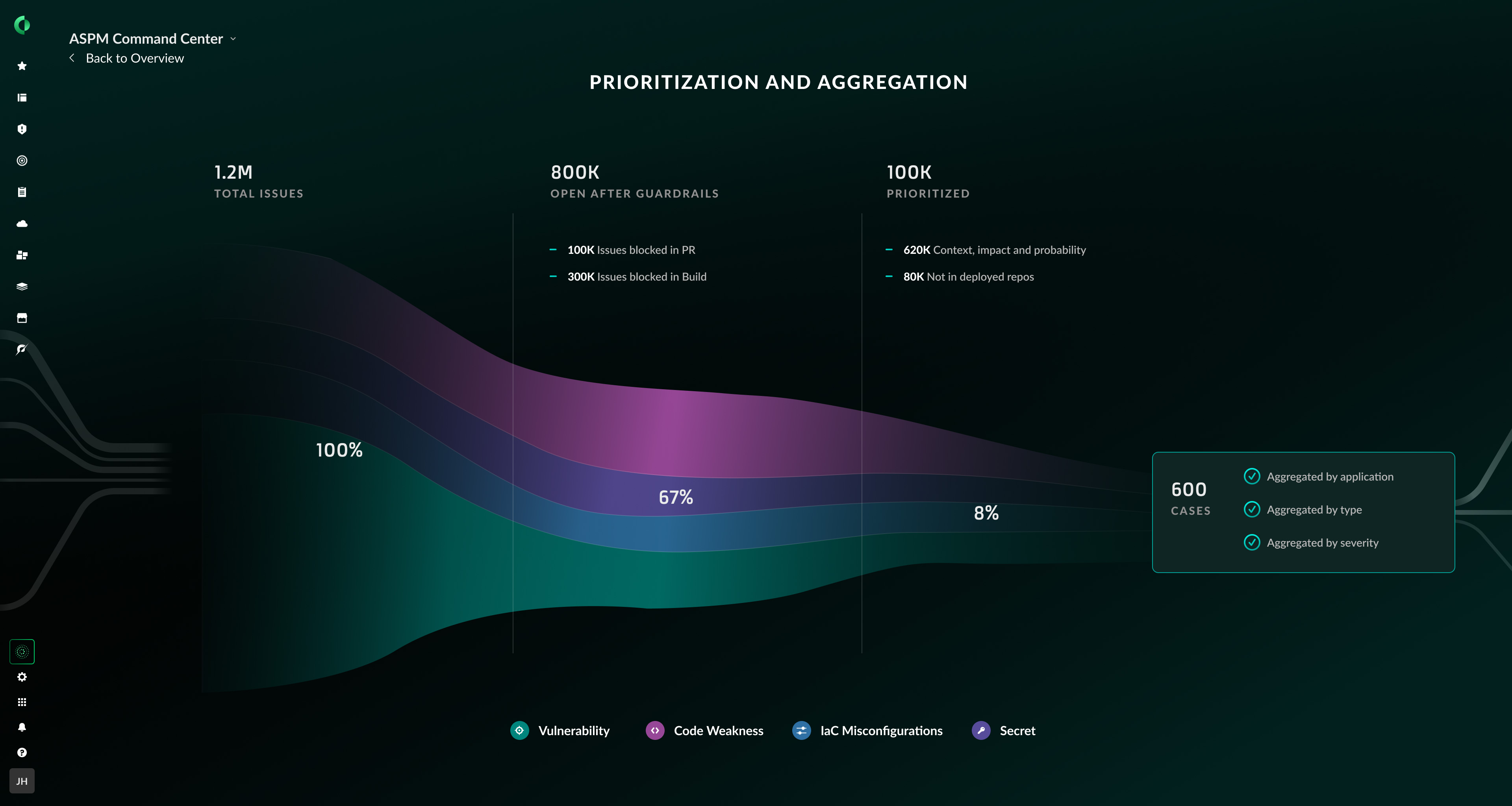 전체 코드, 클라우드 및 런타임 컨텍스트를 사용하여 결과를 통합하고 우선 순위를 지정하여 기존 AppSec 도구의 가치를 극대화하세요.