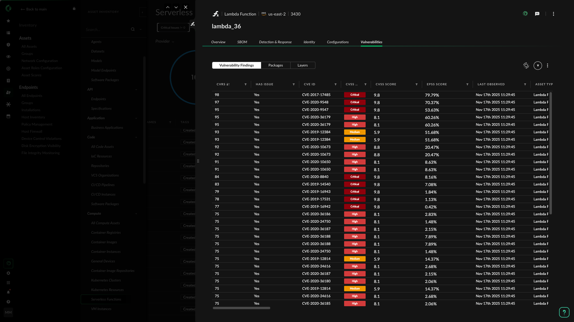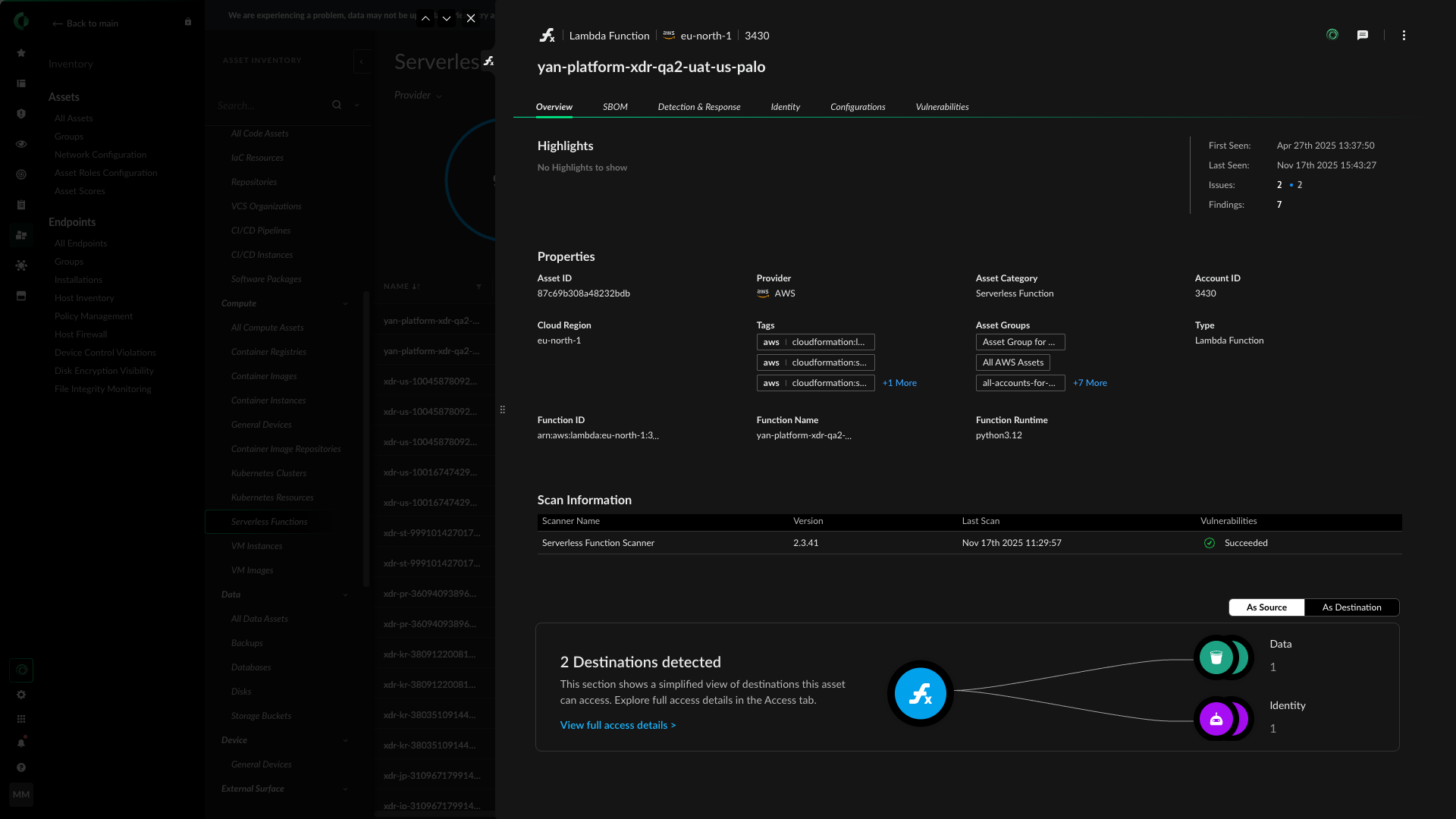 지속적인 스캔을 통해 클라우드 환경에서 실행 중인 기능을 식별하고 보호하세요.