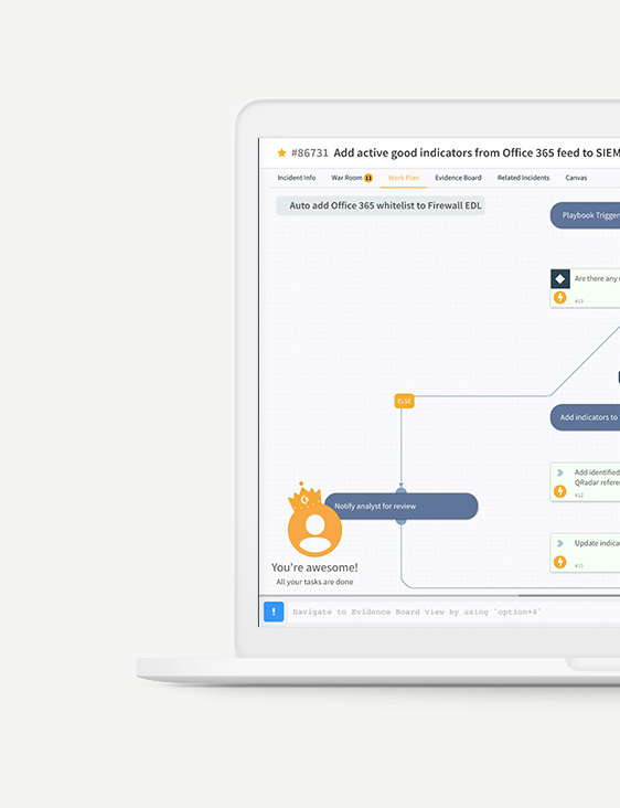보안 오케스트레이션, 자동화 및 대응(SOAR) 기능은 플레이북 기반 자동화를 사용하여 사례 관리, 프로세스 자동화, 위협 인텔리전스를 결합합니다.