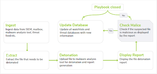 그림 1: 멀웨어 분석을 위한 샘플 SOAR 플레이북