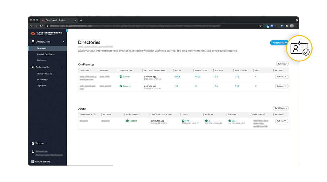 개방형 표준을 기반으로 하는 PAN-OS 포스트 양자 VPN으로 데이터를 안전하게 보호합니다. 또한 Cloud Identity Engine은 ID 공급자 간에 사용자 정보를 집계하고 동기화하여 위치 및 사용자 ID 저장소 위치에 관계없이 일관된 사용자 인증과 권한 부여를 지원합니다. 이 모든 작업은 모든 ID 공급자 간에 ID를 자동으로 동기화하는 포인트 앤 클릭 구성으로 수행됩니다.